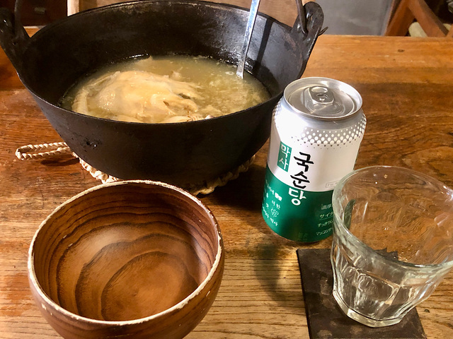 韓国料理って辛いイメージがありますが、このサムゲタンのように素材の味を楽しめる優しい味わいのものもあり、またこれが韓国のお酒に合うんですよね。