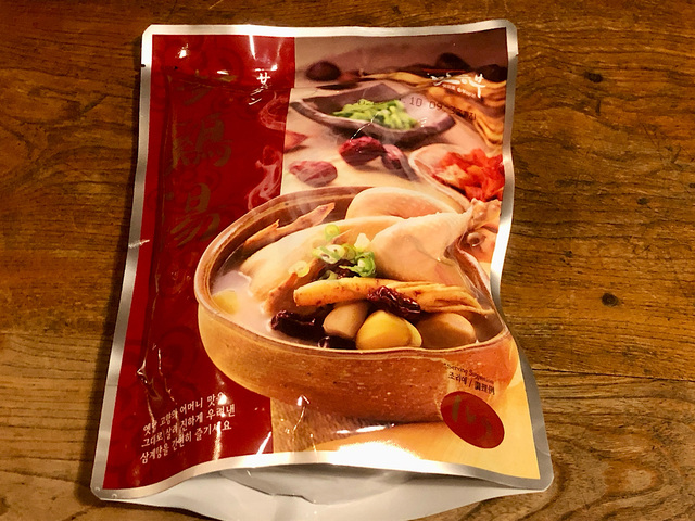 まず紹介するのは、日本でも人気が高い「参鶏湯」(サムゲタン)。丸ごと1羽の若鶏に高麗人参やもち米、にんにくなどの具材をつめこみ、じっくりと煮込んだ商品です。