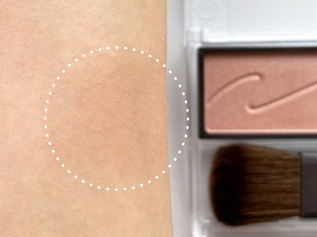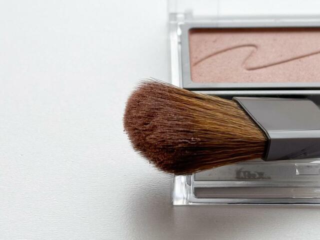 付属のブラシでのせると自然に肌色との境目がぼやけて、じんわりとにじむように発色します。