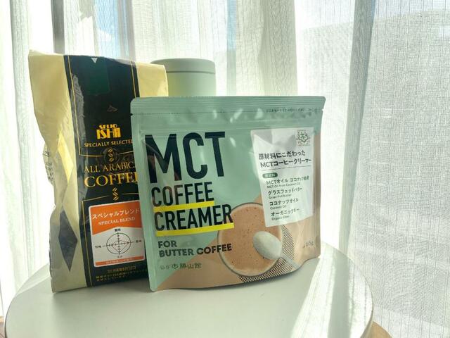 そしてこの「MCTコーヒークリーマー」は、MTCオイルの専門店である「勝山館」のアイタムなので、成分の約70%が厳選された良質な脂質(ココナッツ由来MCTオイル、グラスフェッドバター、ココナッツオイル、オーガニックギー)で構成されているのもポイントです。