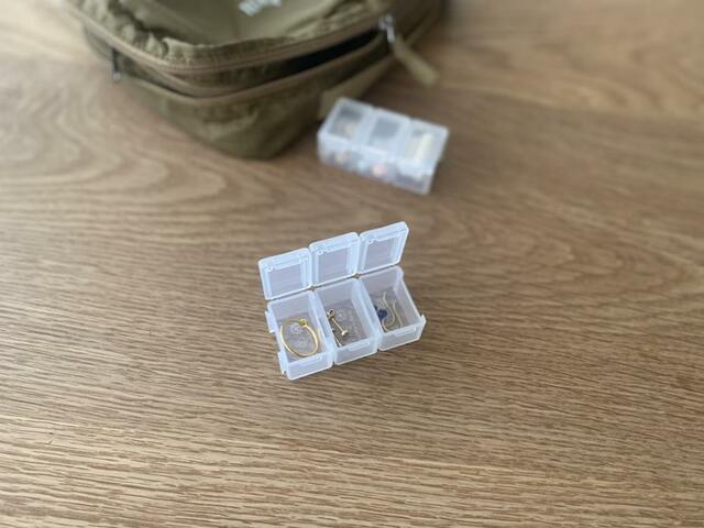 旅行時にオススメな使い方がもうひとつ。それはアクセサリーケースとしての活用です。紛失しやすいピアスや指輪も、これに入れておけばポーチで迷子になりません。