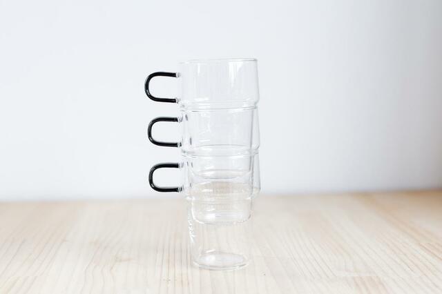 そして私が特に気に入っているのが、取っ手つきのグラスなのに、スタックができるところ。