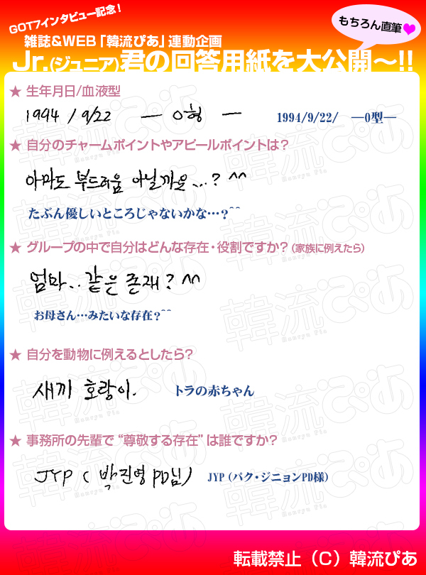 雑誌「韓流ぴあ 10/31号」(9月22日発売)P.37掲載のパーソナルQ&Aの直筆と未掲載の部分をここだけで公開です!