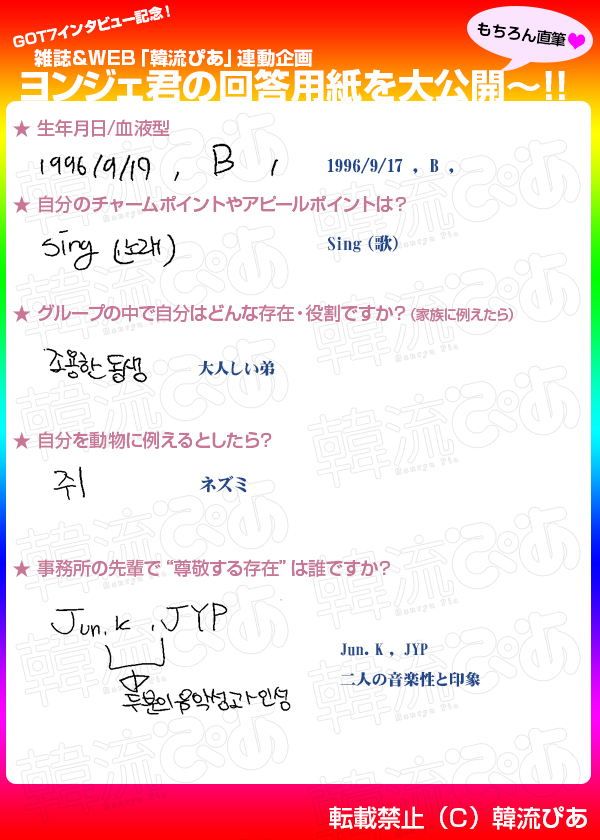 ☆お宝☆ヨンジェ君の直筆回答用紙を大公開!
