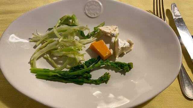 1週間ほど前から、いろんな人がいろんな種類のチーズを持ってきてくれて、我が家は「チーズ王国」のよう。ミモザ、ロックフォール、ブリー。今夜はチーズから食事を開始。プンタレッレ、チーマディラーパ。