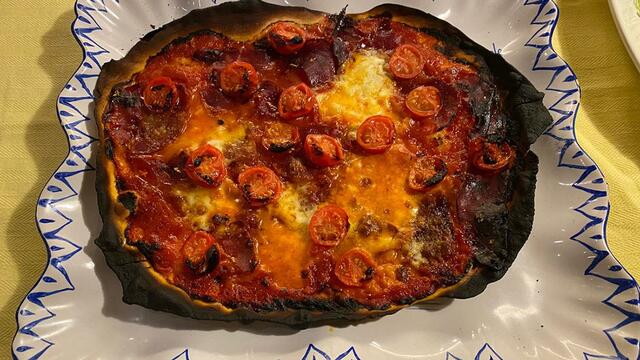 お昼のナンがそれなりに成功したので、今度はTORU君、PIZZAに挑戦。新しくしたばかりのガスオーブン(使い方がまだよくわかっていない)で焼いたら「真っ黒焦げのPIZZA」が!! あらまこれじゃあねえ。