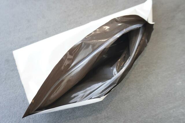 厚さ0.045mmと薄いビニールですが、マチがあるので何も入れなくても自立できるほどしっかりとしたつくりになっています。