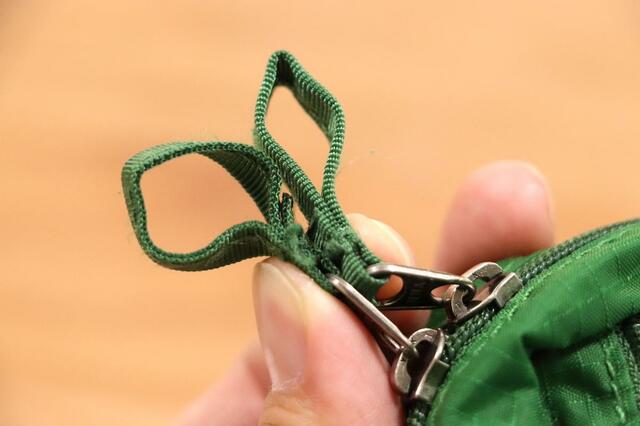 ファスナーの取っ手部分も輪になっているから、ここにもカラビナ付けられそう。