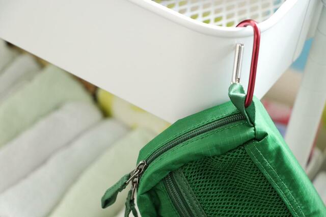 両サイドのループにカラビナを取り付ければ、引っ掛けて使うこともできます。