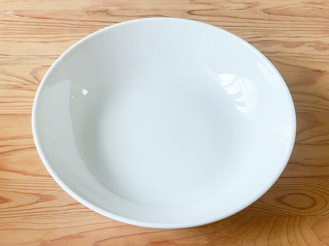 約直径21cm×深さ5cmのシンプルな深皿はカレーやパスタ、サラダを盛り付けるのにぴったりなサイズ感。