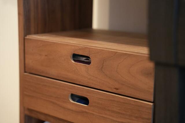 天然木が使われていて雰囲気もバッチリなこの棚、使い勝手もよくて便利ですよ!