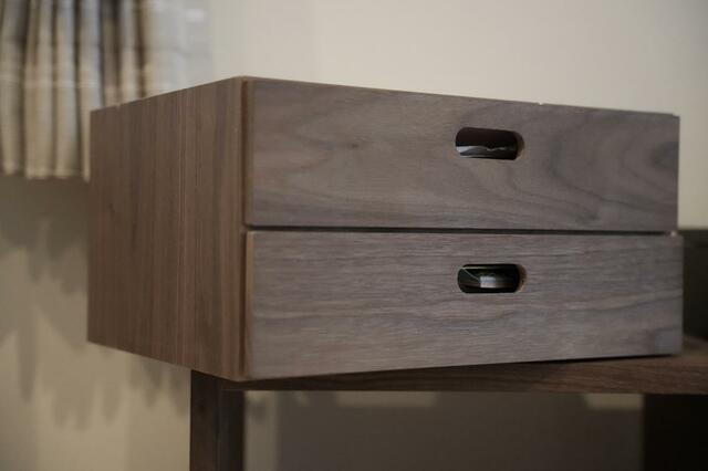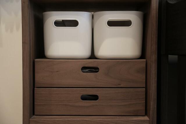 例えばこの「スタッキングチェスト・ハーフ・引出し・2段」がピッタリ入るようなサイズになっています。