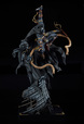 大きくなびくちぎれた縄により、一瞬の動きを広い奥行きで表現。崩れゆく城の屋根をイメージした台座は、瓦や木材までこだわった造形で、スタチュー全体の重厚感を増幅させています。
