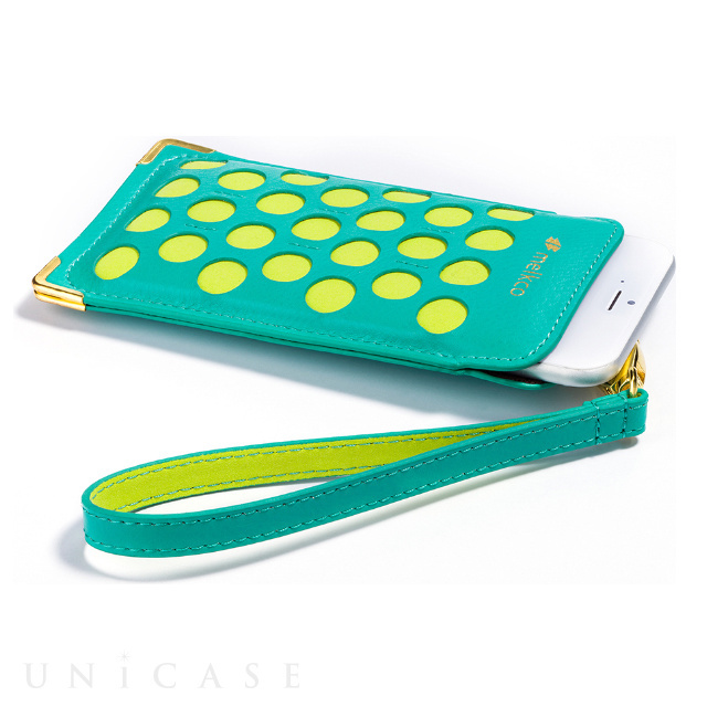 鞄に付けられるストラップ付きのプレミアムレザーケース。映えるピンクとポップなブルーの2パターンのバリエーションが用意されています。ストラップ以外にはムダな装飾がなく、デザインはとてもシンプル! これなら、ビジネスからプライベートまでシーンを選ばずに持ち歩けますね。