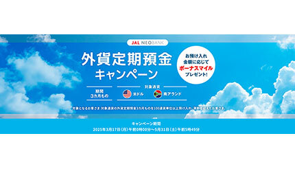 JALマイレージバンク会員専用ネット銀行口座「JAL NEOBANK」、「外貨定期預金キャンペーン」を開催中