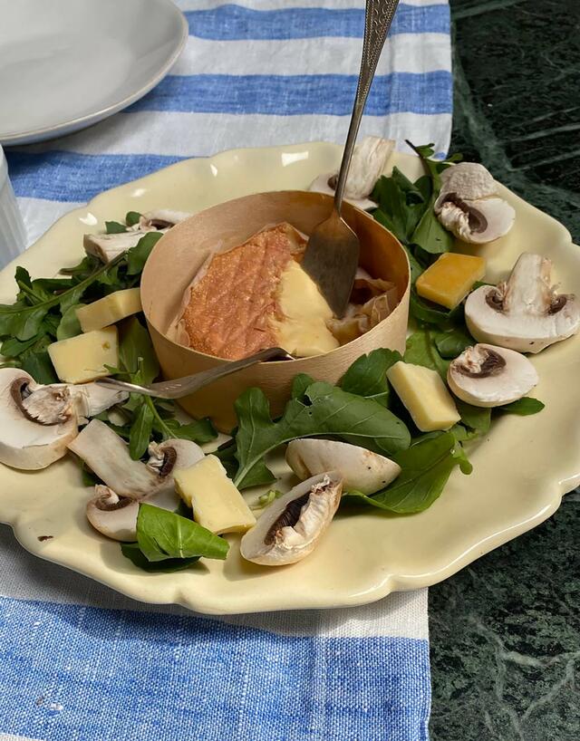エポワス(パンがないのでマッシュルームのスライスで代用)、
