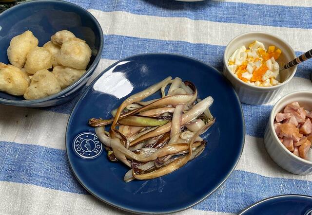 マッシュルームのフリット、ラディッキオのマリネ+ゆで卵。