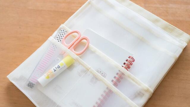 外寸が約34×27×3cm。A4サイズのノートやクリアファイルを収納できます。