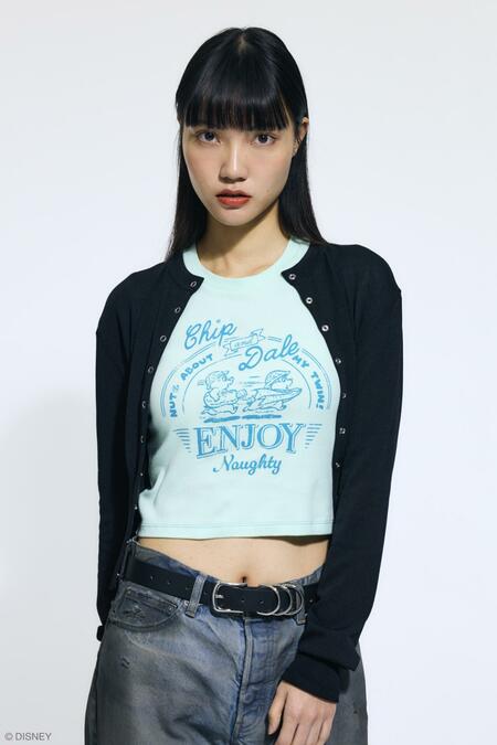 キャンディーのような透明感のあるカラーボタンを、さりげなくミッキーのお顔にしたポップなキャンディースリーブのニットカーディガンなど春らしいアイテムも。