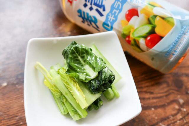 近所のスーパーで手に取りやすい価格になっている小松菜の浅漬けが、最近の常備メニュー。