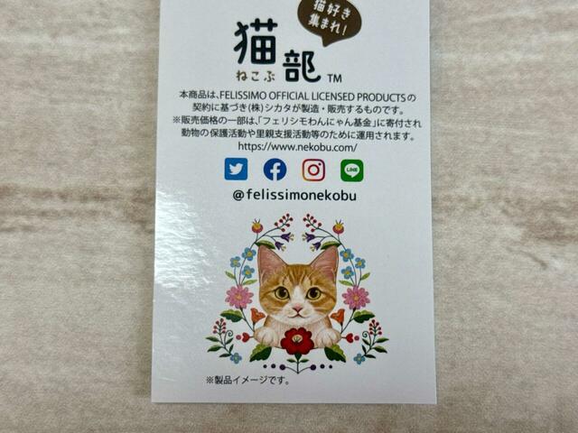 フロントには「NEKOBU」のロゴ入りの猫のお顔刺繍タグ付き。