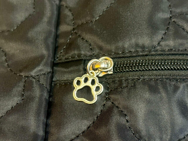 まず、バックにファスナーポケット付き。ファスナートップはシルバーの猫の肉球モチーフで、細部まで猫好き魂を感じます…!