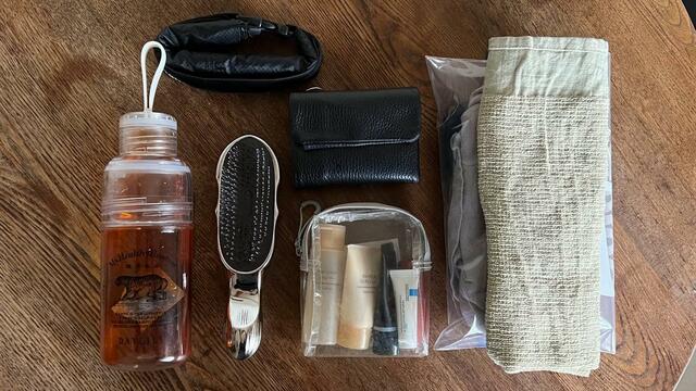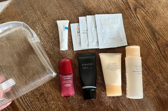 荷物は極力減らしたいので、ミニボトルやサンプルを活用し、丁寧にスキンケアをしています。