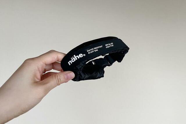 上部はねじってバックルで留めると持ち手にすることができ、ねじる回数によって容量を調整できるのも◎。