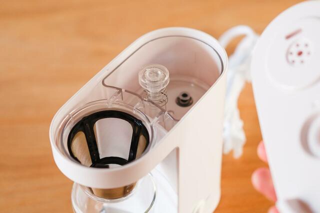 本体上部のフタを外すと、中にはコーヒー粉と水をセットするカセットタンクが入っています。