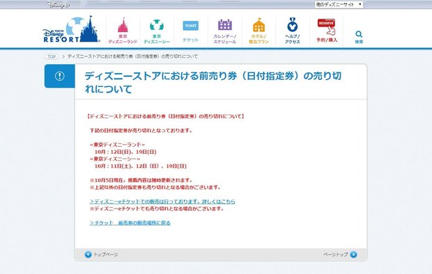 オフィシャルサイトでは「ディズニーストアにおける前売り券(日付指定券)の売り切れについて」という告知が出ている