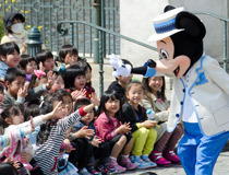 リロ・アンド・スティッチの音楽に乗せてショーがはじまると、リロ、スティッチ、ミッキー、ミニー、チップとデールが登場し、ゲストのいるテーブルにそれぞれ挨拶に来てくれます!