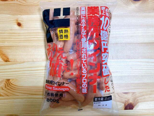 おかず部門で最も紹介したいのは、年間売上10億円を突破した大人気商品「業務用ウインナー(800g)」です。