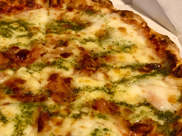 テイクアウト容器の蓋を開けると、バジルとチーズの香りが部屋の中にふわっと広がり、食べる前からワクワクしてきちゃいました。