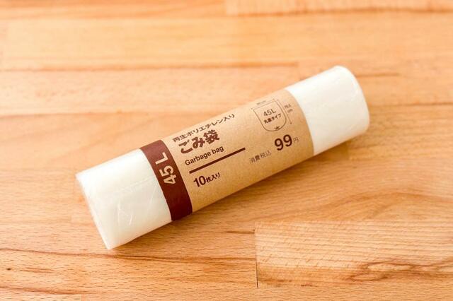 引っ越しをしてから指定のゴミ袋が不要になり、選んだのが無印良品のもの。ごみ箱用に20L、大きいごみをまとめるのに45Lとサイズ違いで愛用しています。