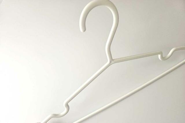 ハンガーにはこだわりたくて、できるだけシンプルで場所を取らず、ガチャガチャ音がうるさくないものを探しました。そしてたどり着いたのが、こちらの「再生ポリプロピレンハンガー」。くぼみがあるので、衣類がずれ落ちることはなく、薄くてシュッとした見た目も好み。音もうるさくなくて、心地いいんです。洗濯用にもクローゼットでの収納用にも愛用中。