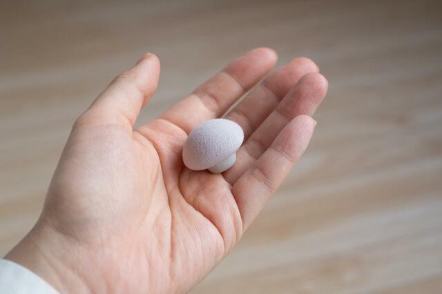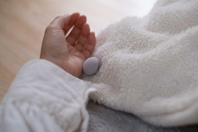 コロンと丸い形で布のような質感なので、手に当たっても不快感がありません。