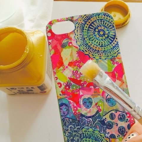 のりが完全に乾いたら、ニスを薄く塗ります。筆はのりを塗るときに使ったものでも、洗ってあればOK。