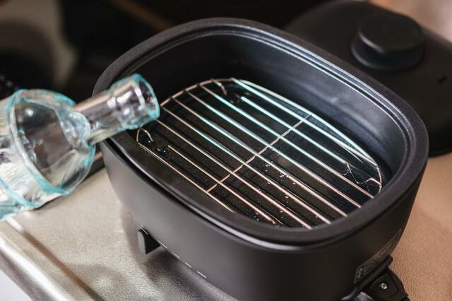 グリルプレートに水を入れたら、蒸し台をセットして準備完了。好きな野菜を並べてフタをします。