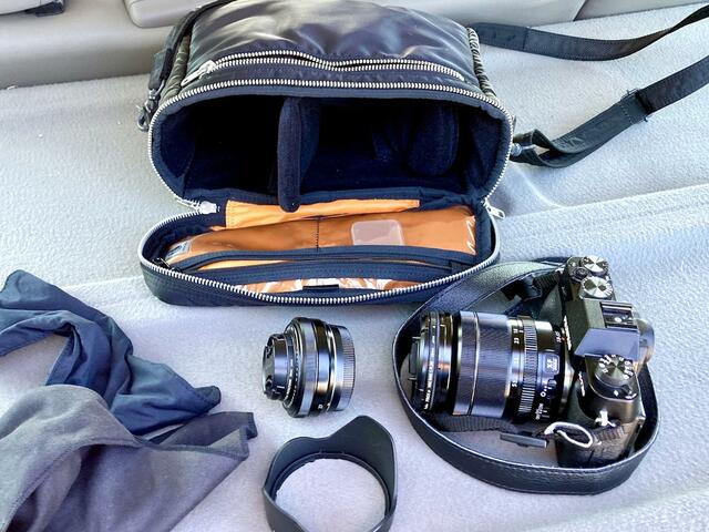 アウトドア遊びの時や、フィールドワーク、旅行などは単焦点の薄型レンズ(FUJIFILM XF 27mm F2.8)に切り替え。