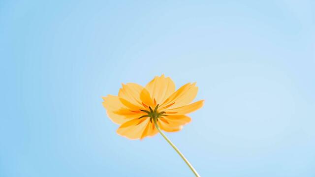 とってもきれいな青空の日だったので、コスモスと同じ目線になって撮影しました。