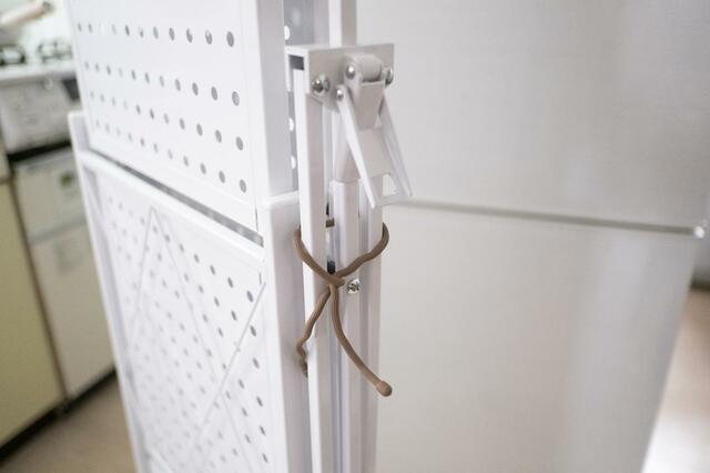 壁際に立てておくだけだと、急に倒れたり勝手に棚に戻ったりしてしまいそうで、ちょっと心配になりました。