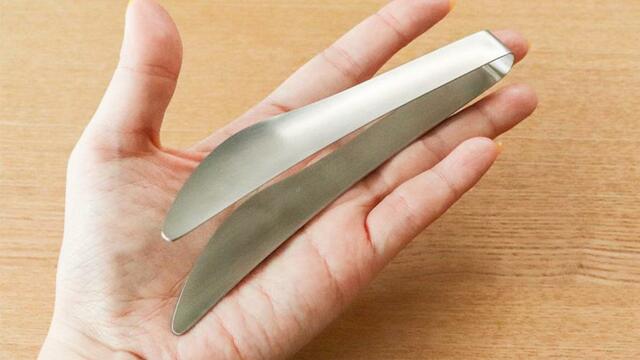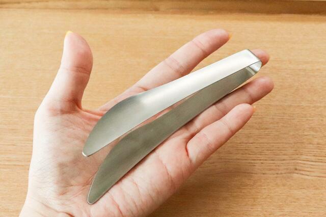 最後に紹介するのは、「ステンレス つまめるミニトング」。長さが約14.5cmと、手のひらに乗るほど小さいんです。