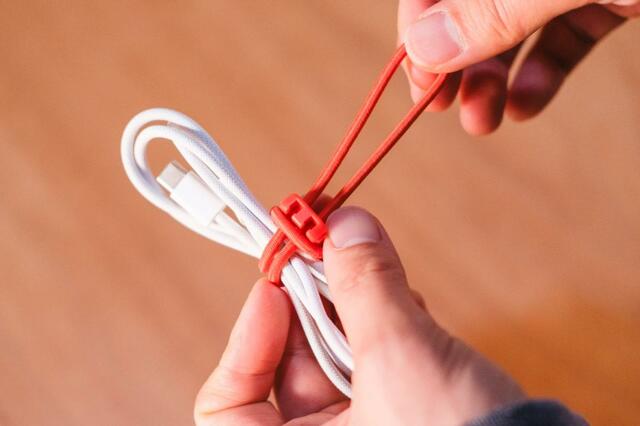 もう一つの留め方は、充電コードのような細いものをしっかりと固定したいときにおすすめ。