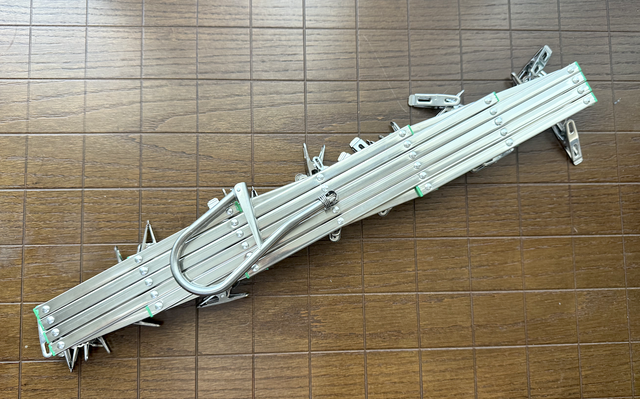 そこで我が家にもともとあった、36個ピンチがついたピンチハンガーと比較してみました。まず、広げた状態。