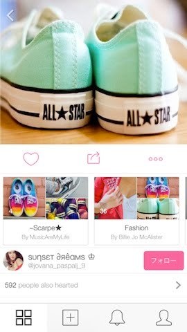 気に入った写真はハートをタップして、どんどん自分のキャンバスを充実させていきましょう。誰かがフォローしてくれると、自分のセンスが認められたみたいでうれしくなりますよ!