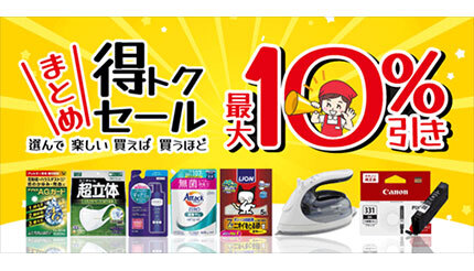 同セールでは、電池、インク、メディア、文具、医薬品、日用品、化粧品、ペット用品、ゲーム、おもちゃ、映像音楽ソフト、ベビー用品、飲料食品、スマートフォン・カメラ・PCアクセサリ、時計、スポーツ用品といった、2万アイテムを超える対象商品を、「2点から」「3点から」「5点から」「10点から」のグループに分けて用意しており、同一グループ内でのまとめ買いで最大10%引きとなる(商品によっては購入制限もあり)。