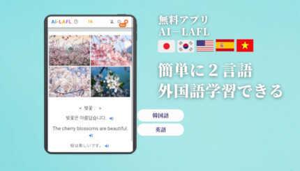 「AI-LAFL」は、AI技術を使用して画像・音声・テキストによって学習者の感覚をフル活用した、多角的な学習体験を提供する外国語学習アプリ。インストール不要・完全無料で、子どもから大人まで誰でも簡単にネイティブな外国語を学べる。