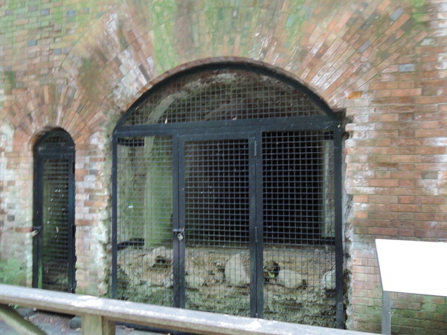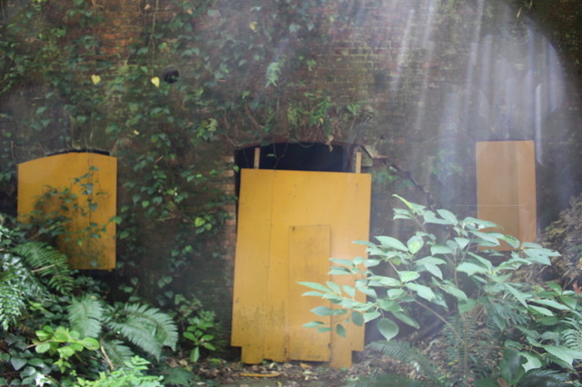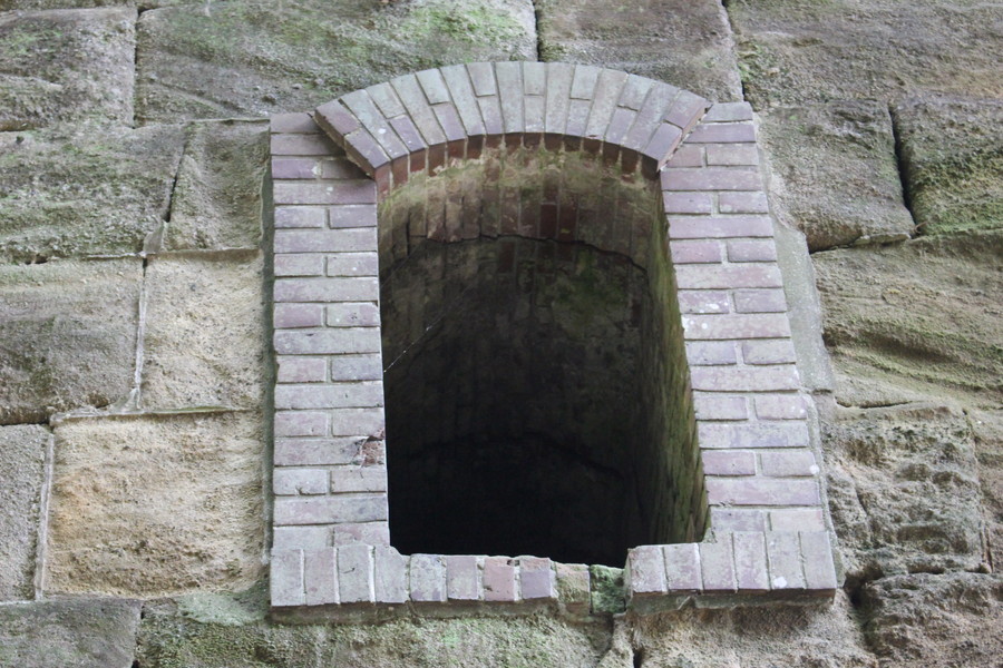 兵舎や弾薬庫が並ぶ通り。レンガが「フランス積み」という小口(短い辺)と長手(長い辺)が交互になっている、手間がかかりなおかつ仕上がりが美しいといわれている積み方で積まれている。これはかなり貴重な建造物なのだそう。ガイドさんに頼むと中へ入れるそう。