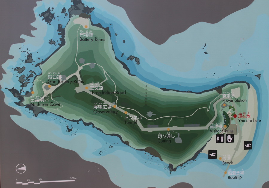 ところどころ劣化した箇所はあるもののきれいに残っている明治時代の建物。この要塞は島の外からは見えないようになっている。