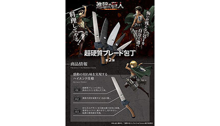 ビックカメラグループは3月21日に、テレビアニメ「進撃の巨人」に登場する超硬質ブレードをイメージした包丁の第2弾を、一部店舗とオンラインショップにて発売した。